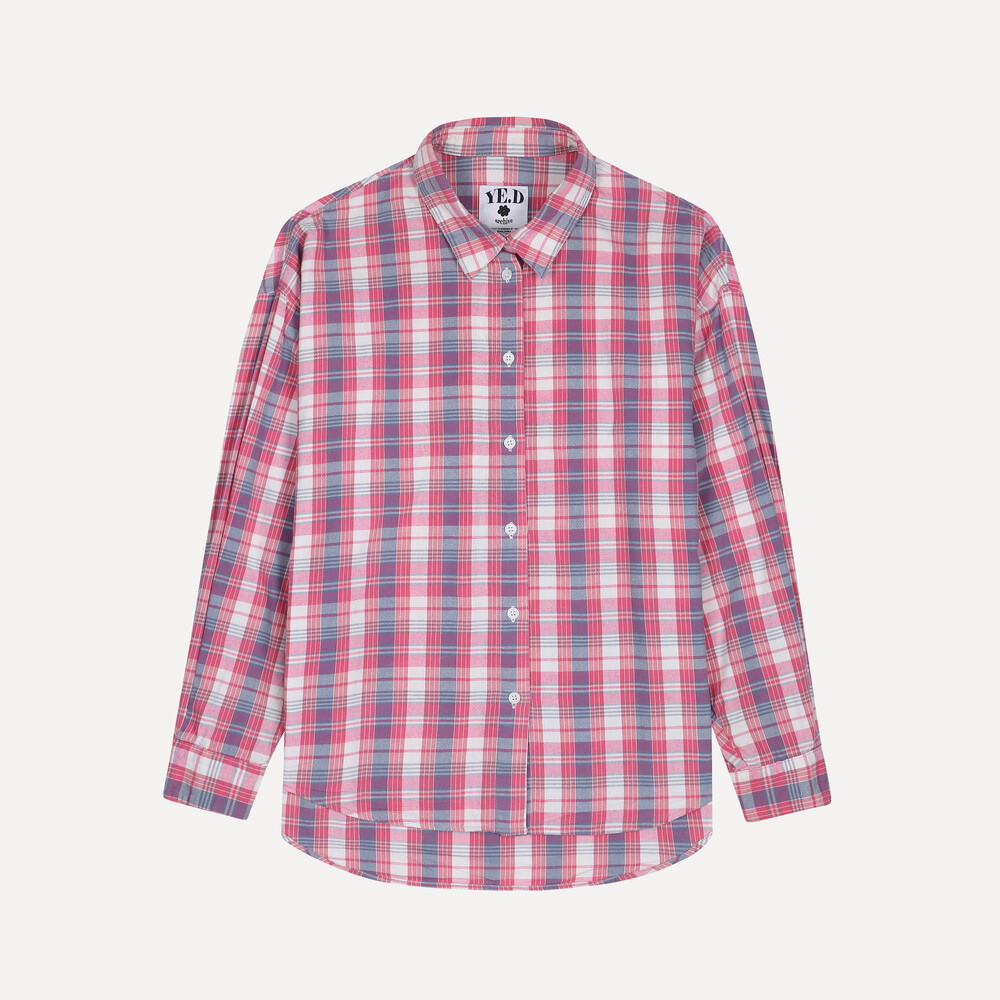면 100% 원단으로 짜여진 체크 원단으로 만들어진 셔프입니다. 예디 아카이브에서 직접 패턴을 개발하여 넉넉한 품과 깊게 파여진 암홀과 소매통이 착용시 예쁜 핏을 연출합니다. 다양한 체형을 보완하고, 단독 또는 레이어드로 스타일링하기 좋습니다.