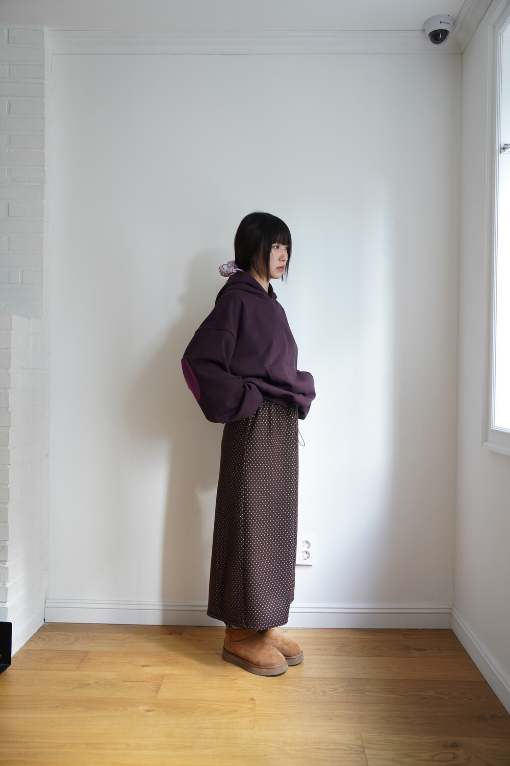 [11월 7일 순차발송] KNIT DOT LONG SKIRT - BROWNIE