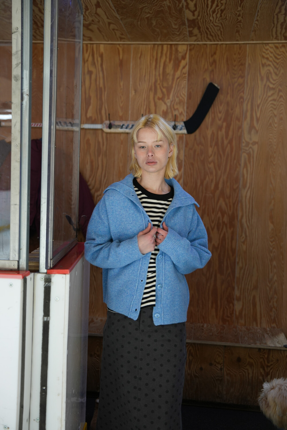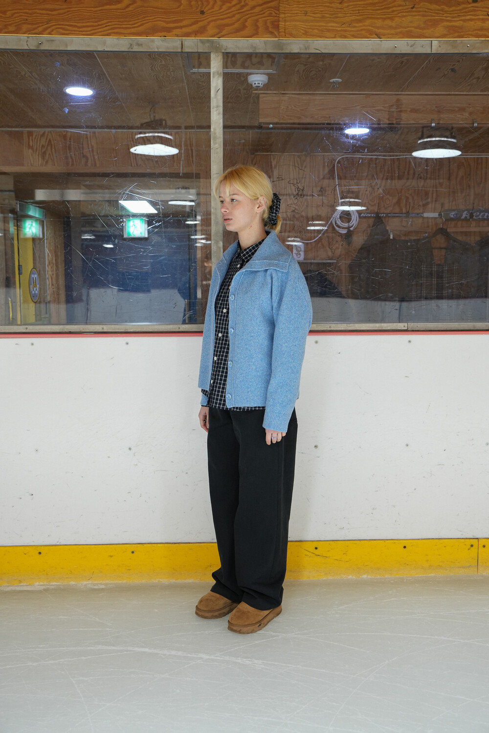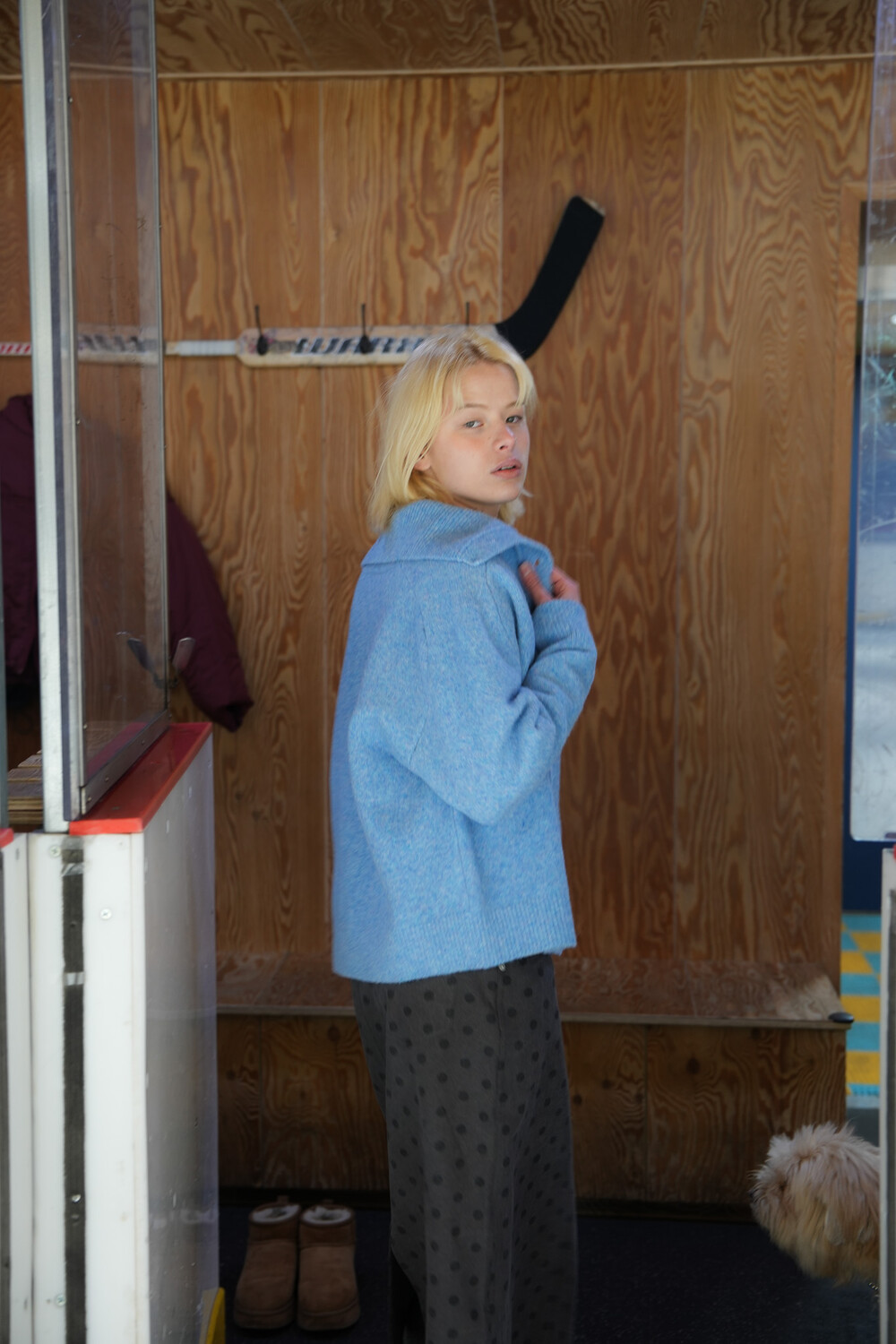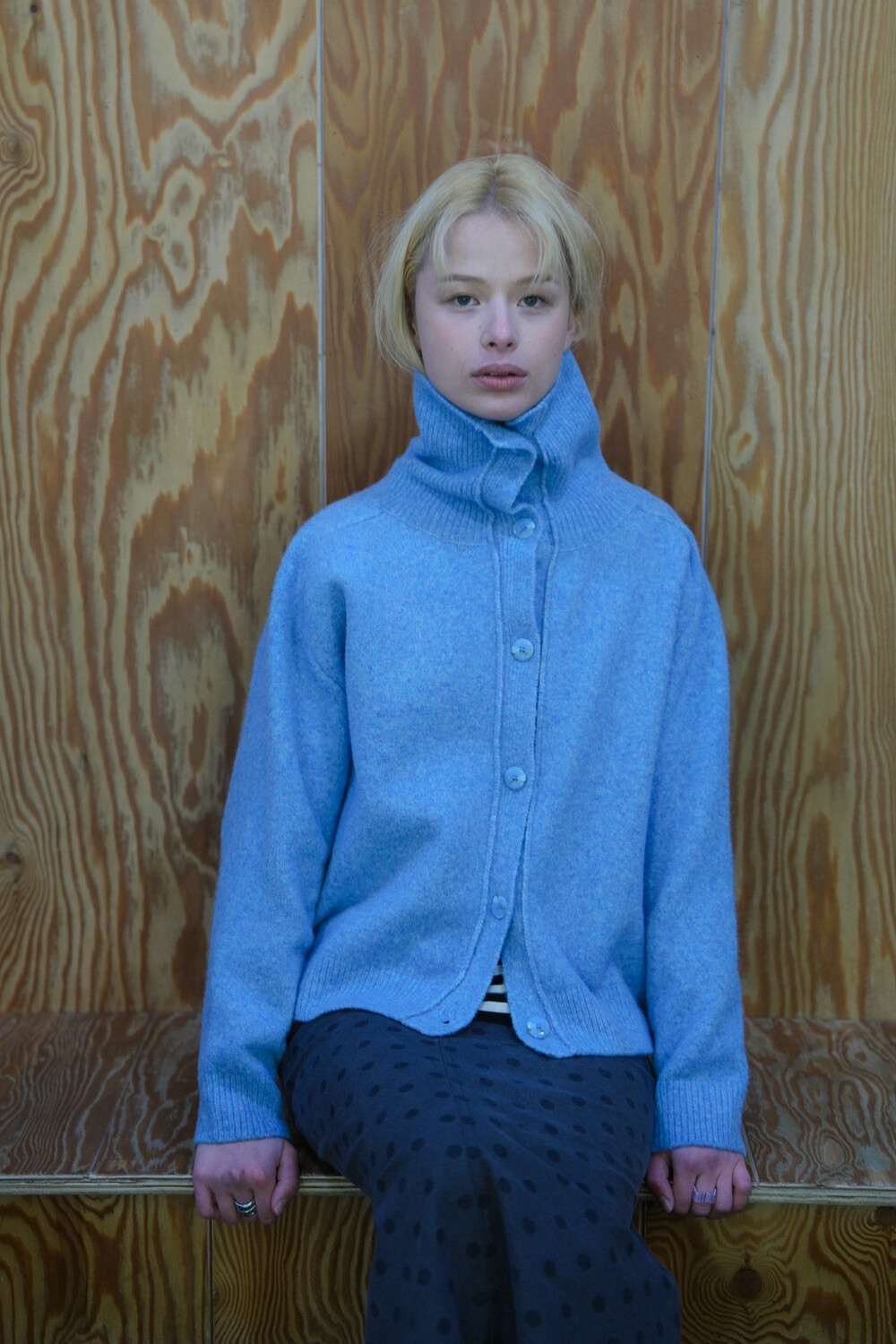 WOOL WING COLLAR CARDIGAN - SOFT SKY