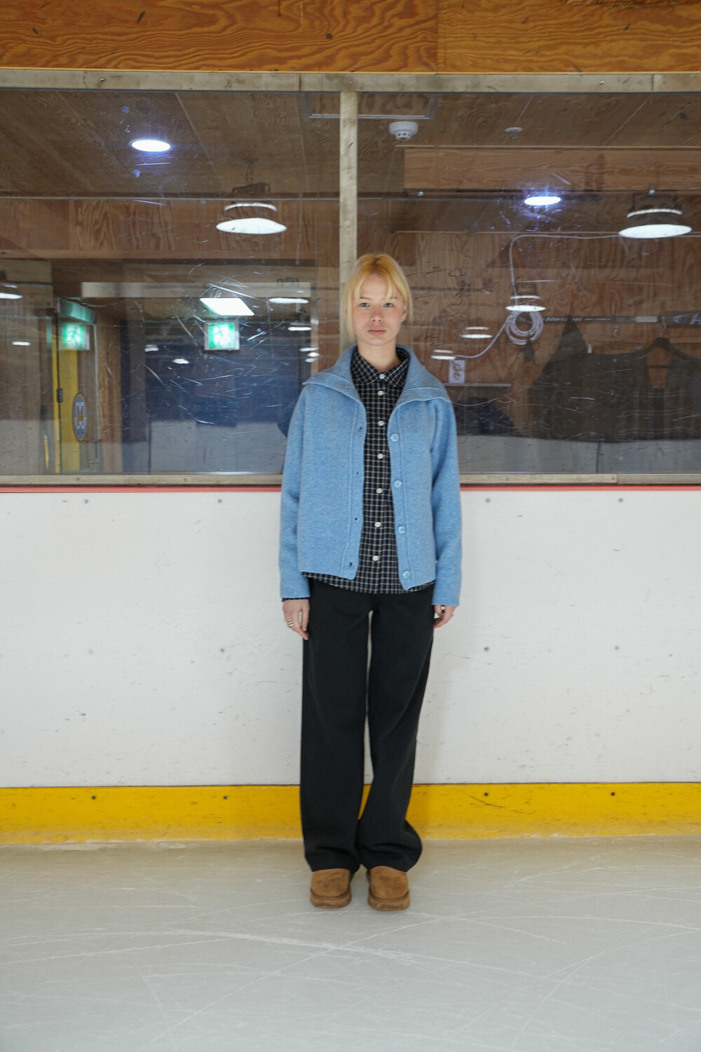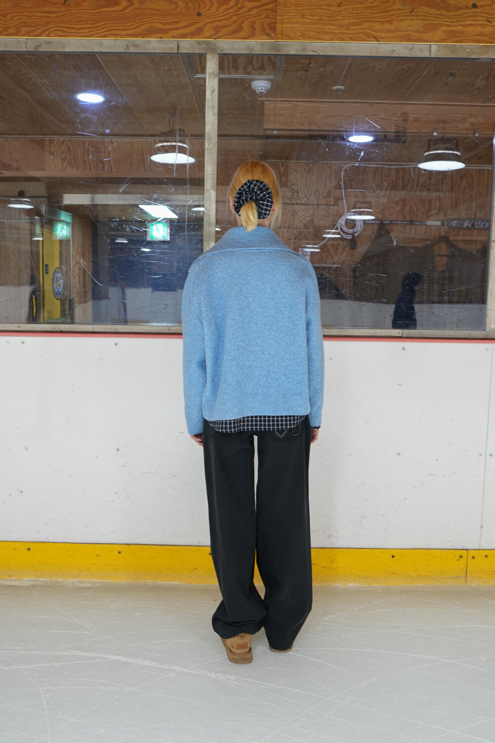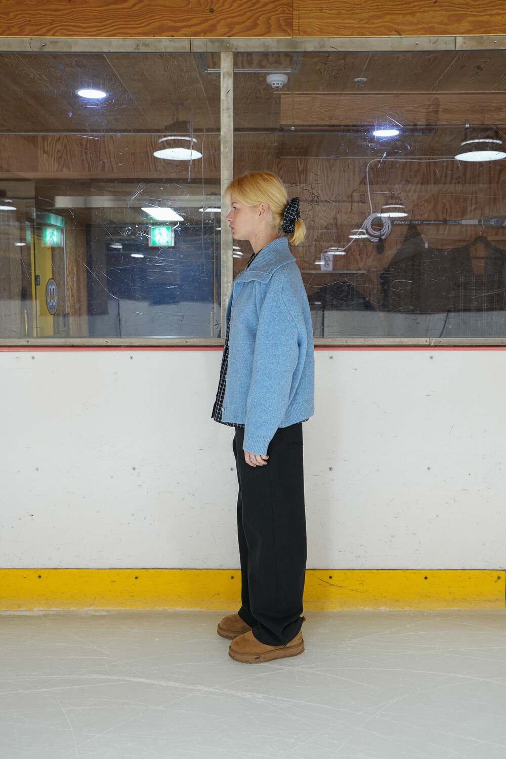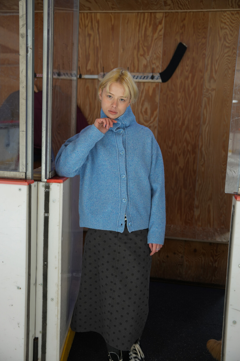 WOOL WING COLLAR CARDIGAN - SOFT SKY