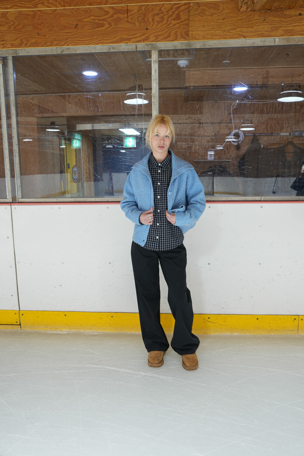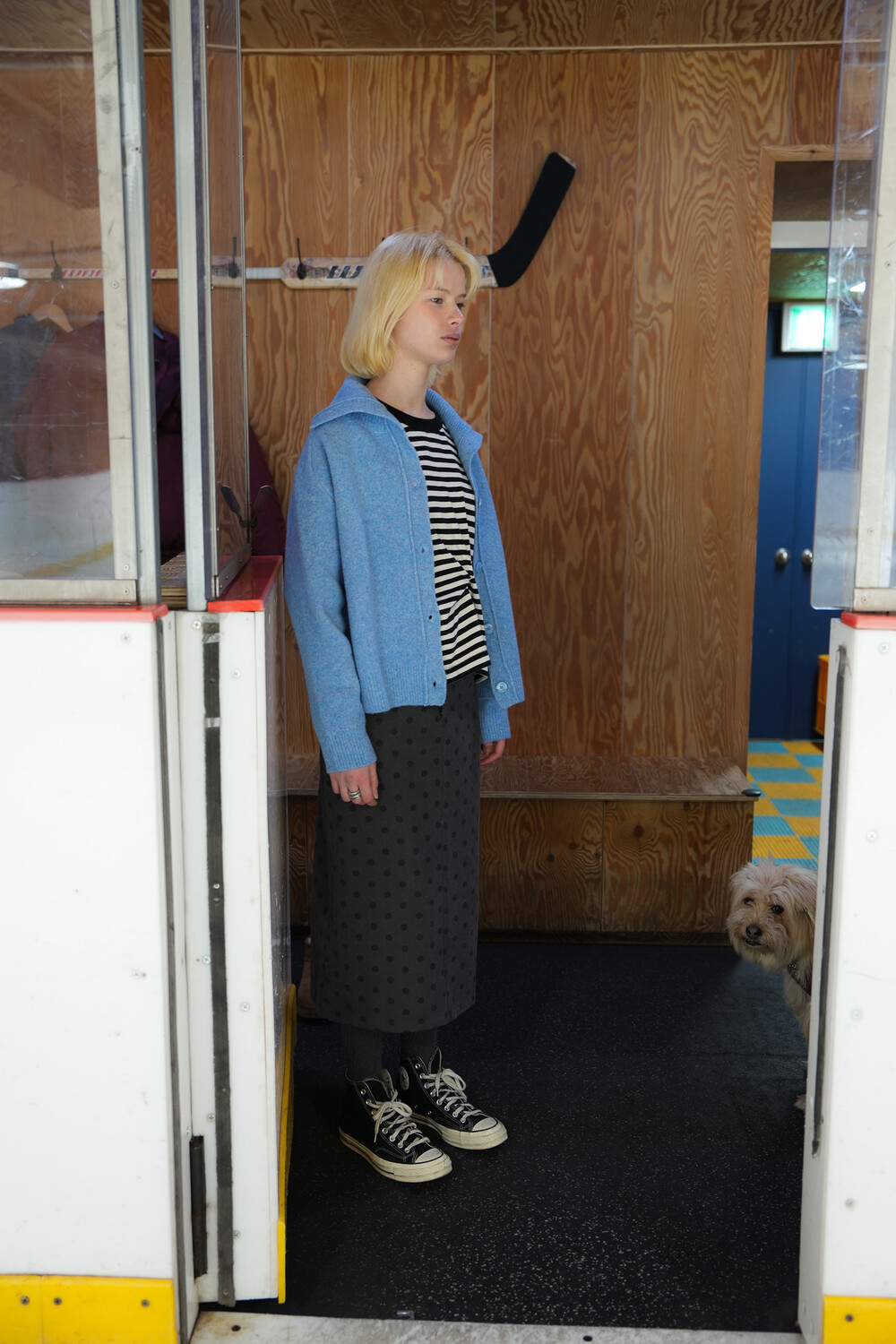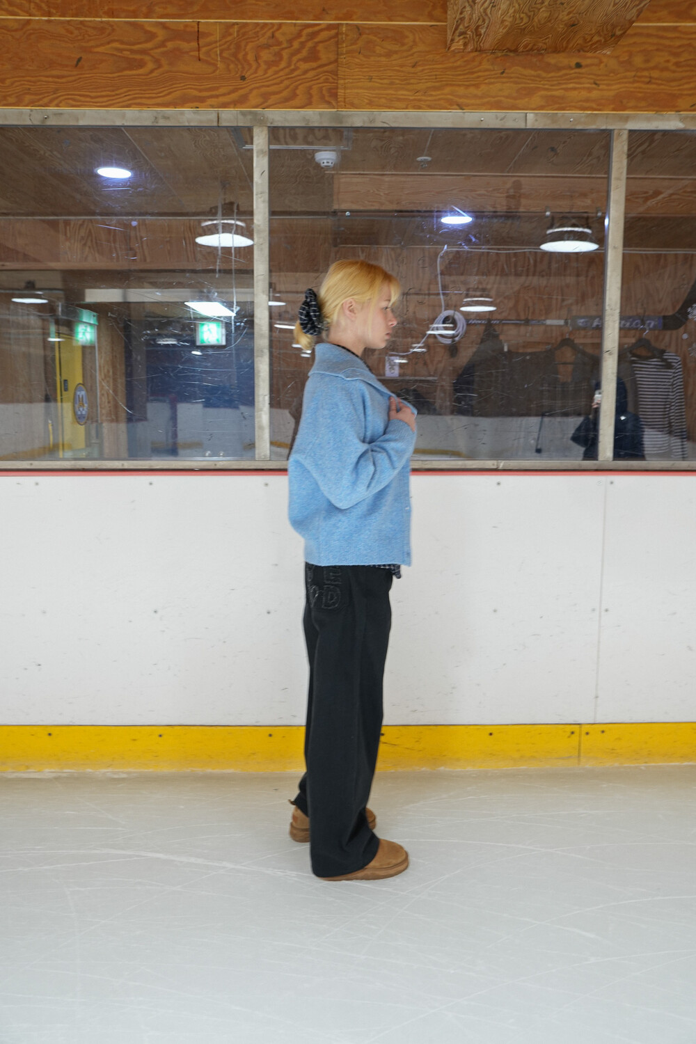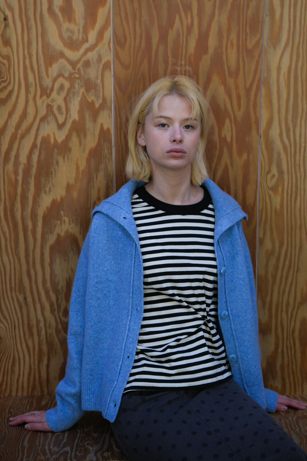 WOOL WING COLLAR CARDIGAN - SOFT SKY