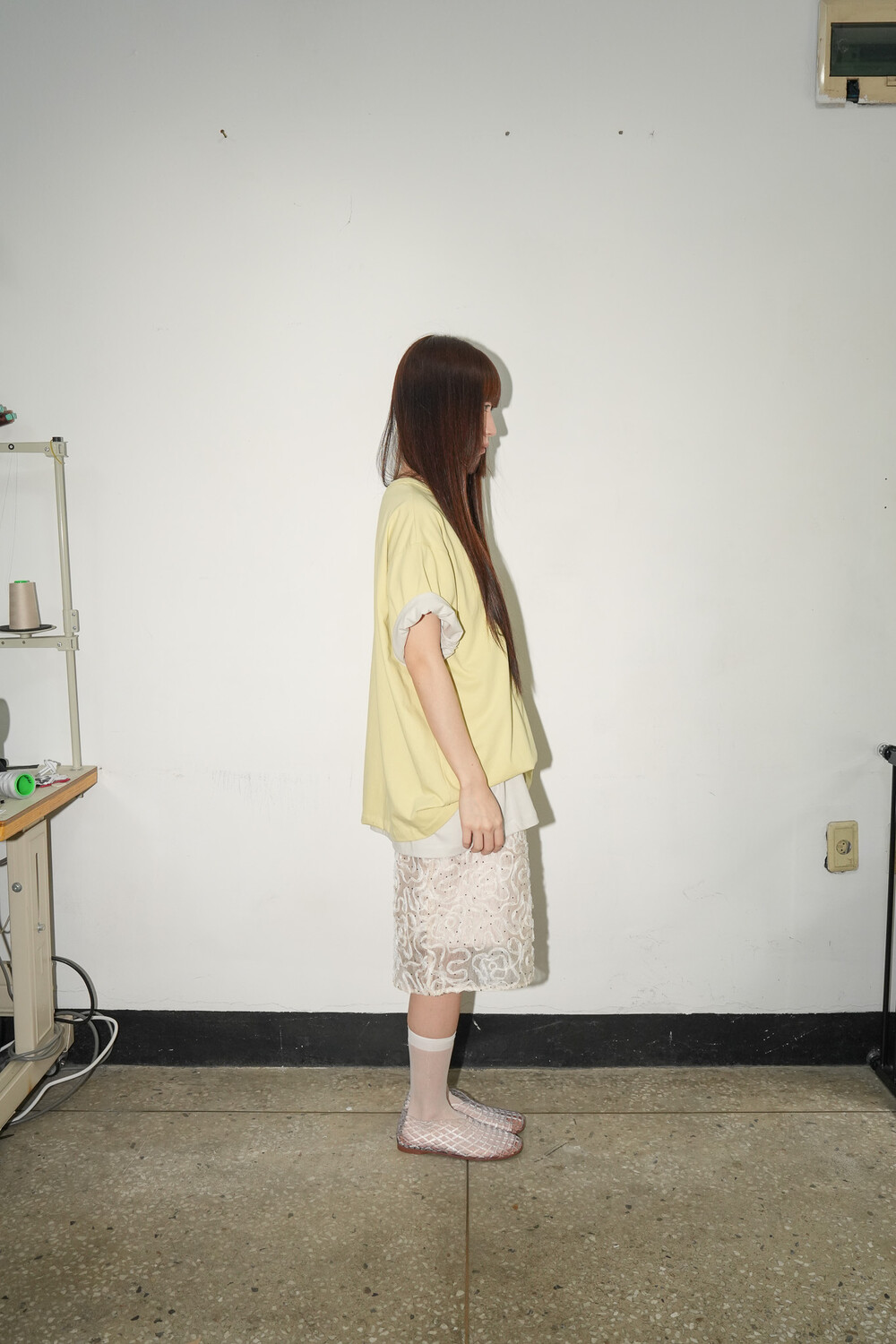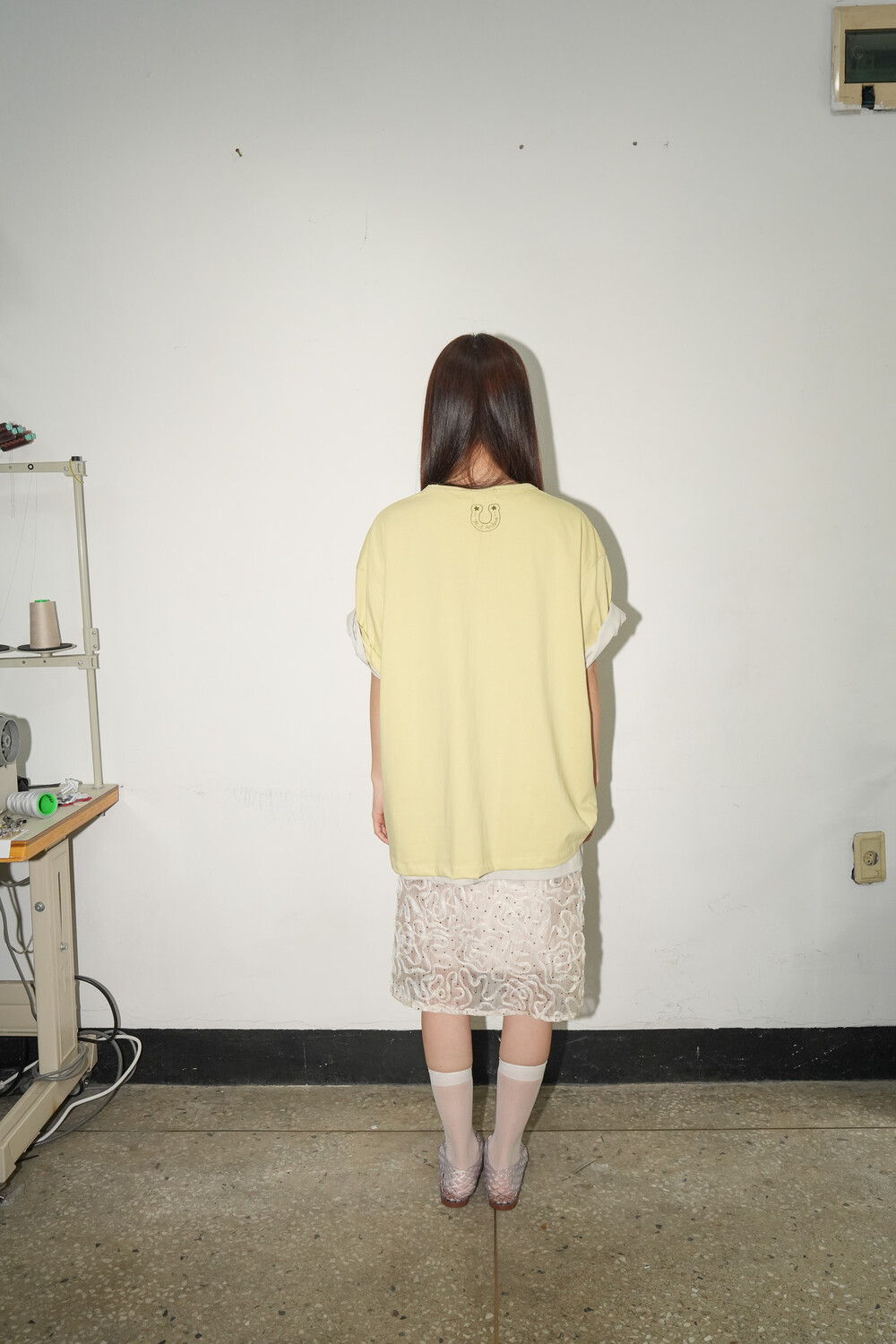 면 100% 싱글 다이마루 소재가 사용된 박시한 핏의 반팔입니다. 네크라인의 리쁘 소재로 랍빠(원단이 원단을 감싸면서 봉제되었는 방식)쳐서 봉제되어 목늘어짐 걱정없이 입을 수 있습니다.
