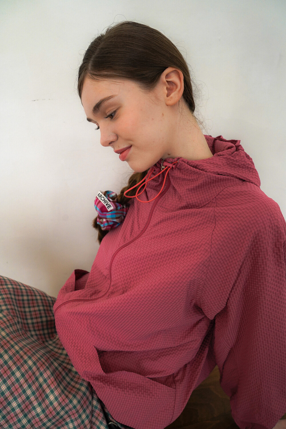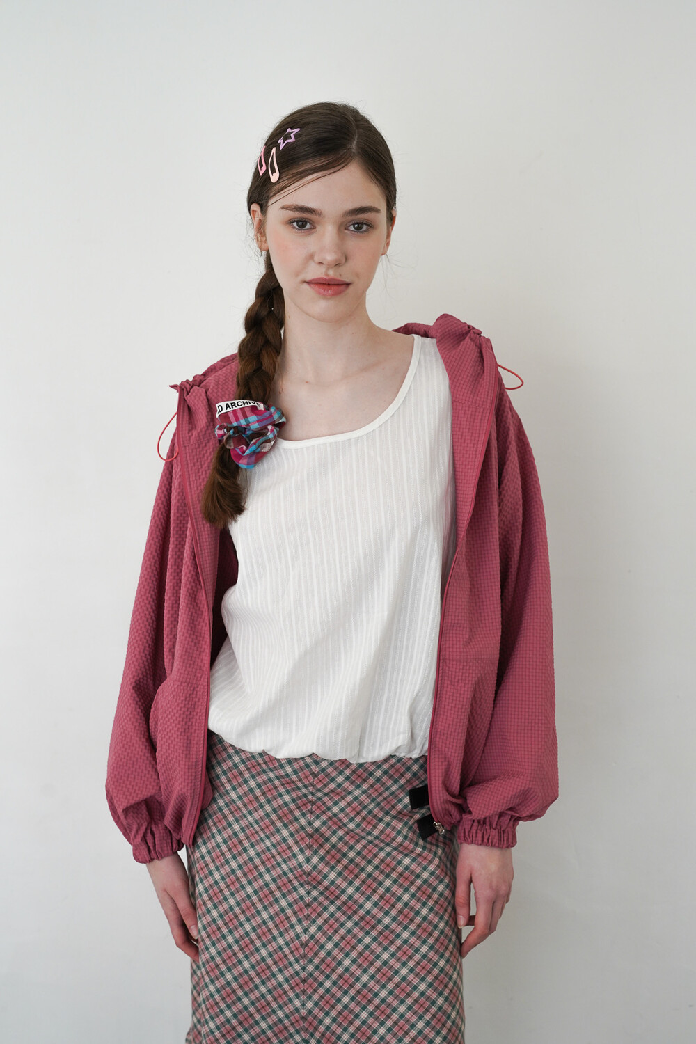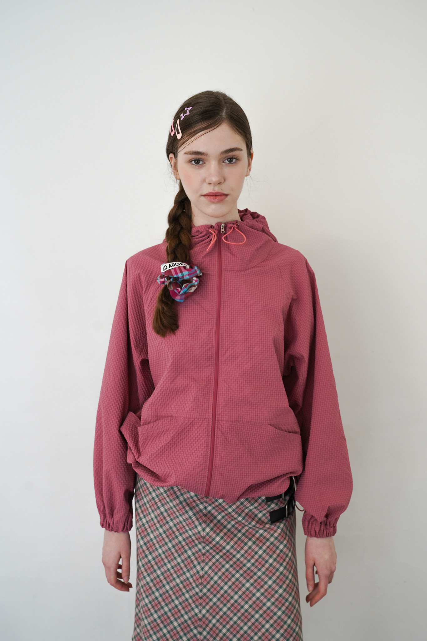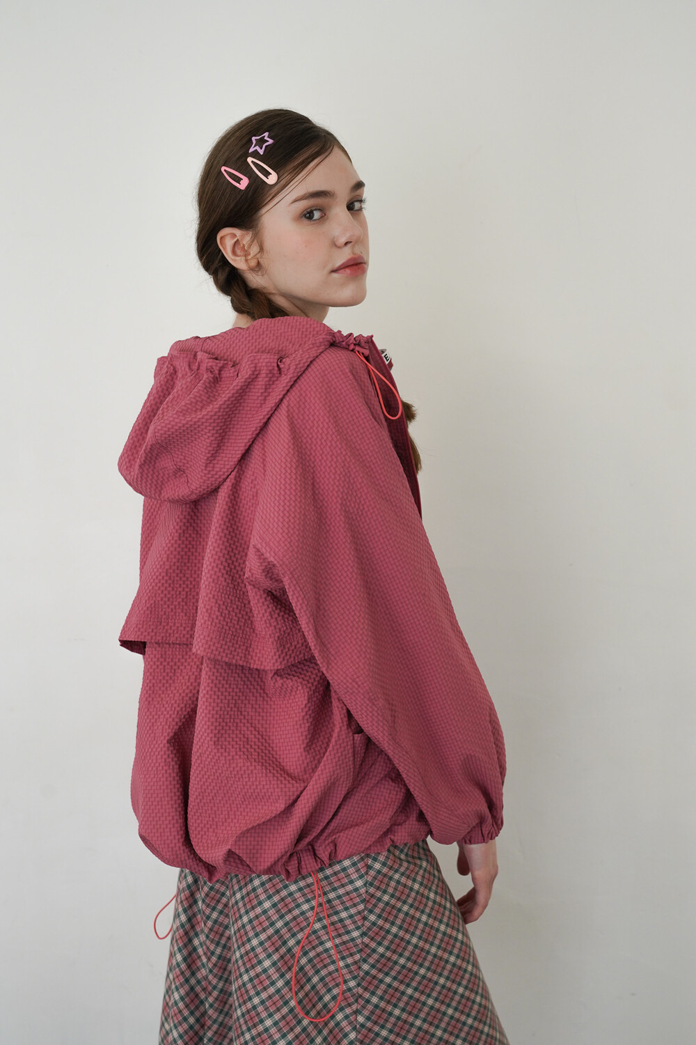 SEERSUCKER HOODIE TRACK TOP - STRAWBERRY PINK