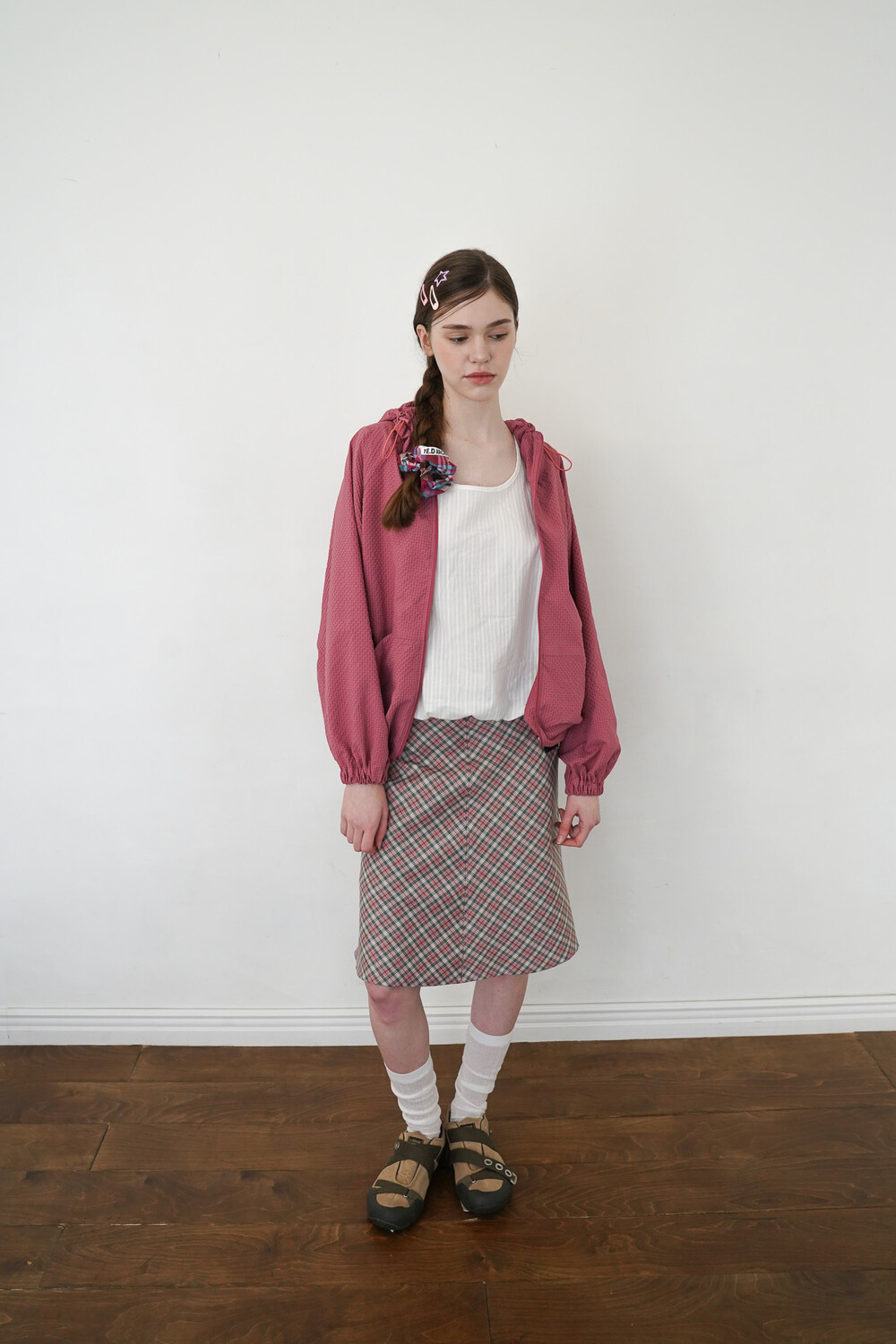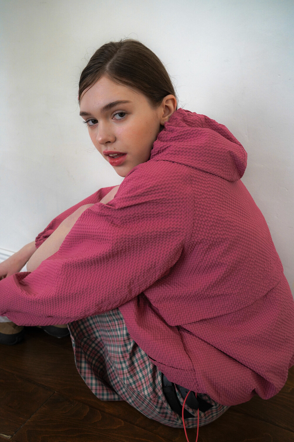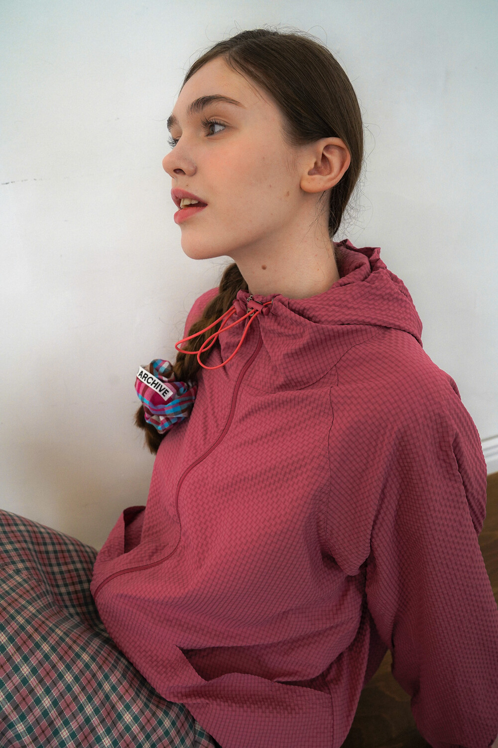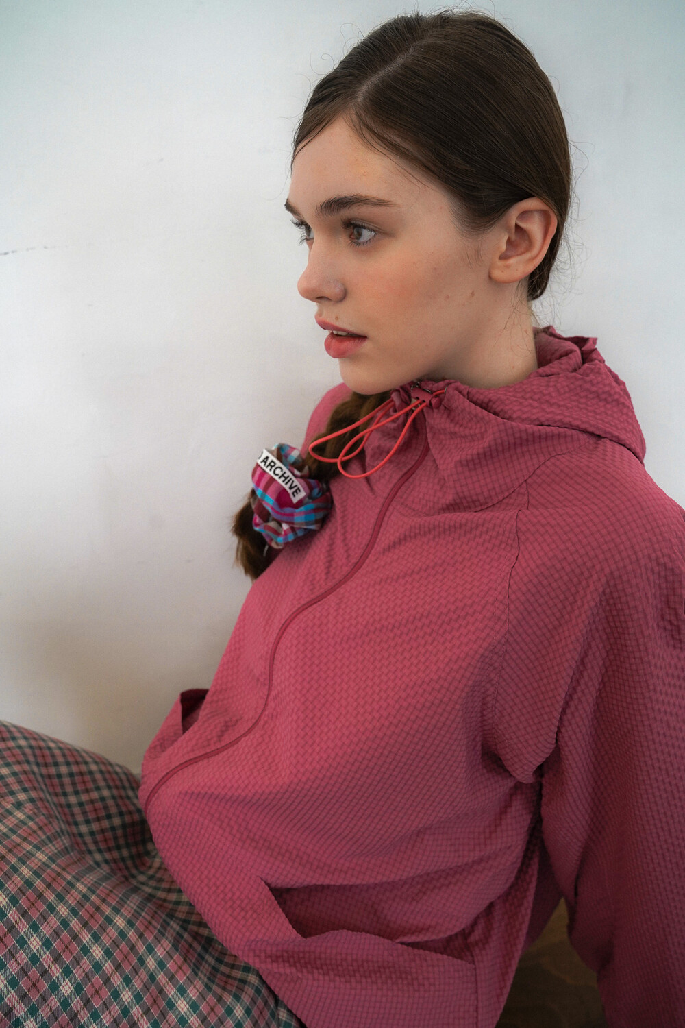 SEERSUCKER HOODIE TRACK TOP - STRAWBERRY PINK