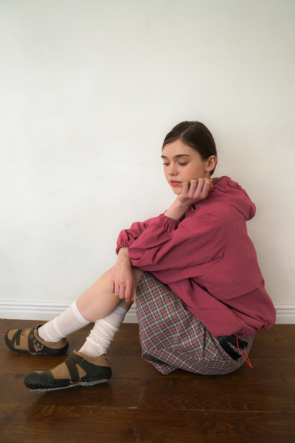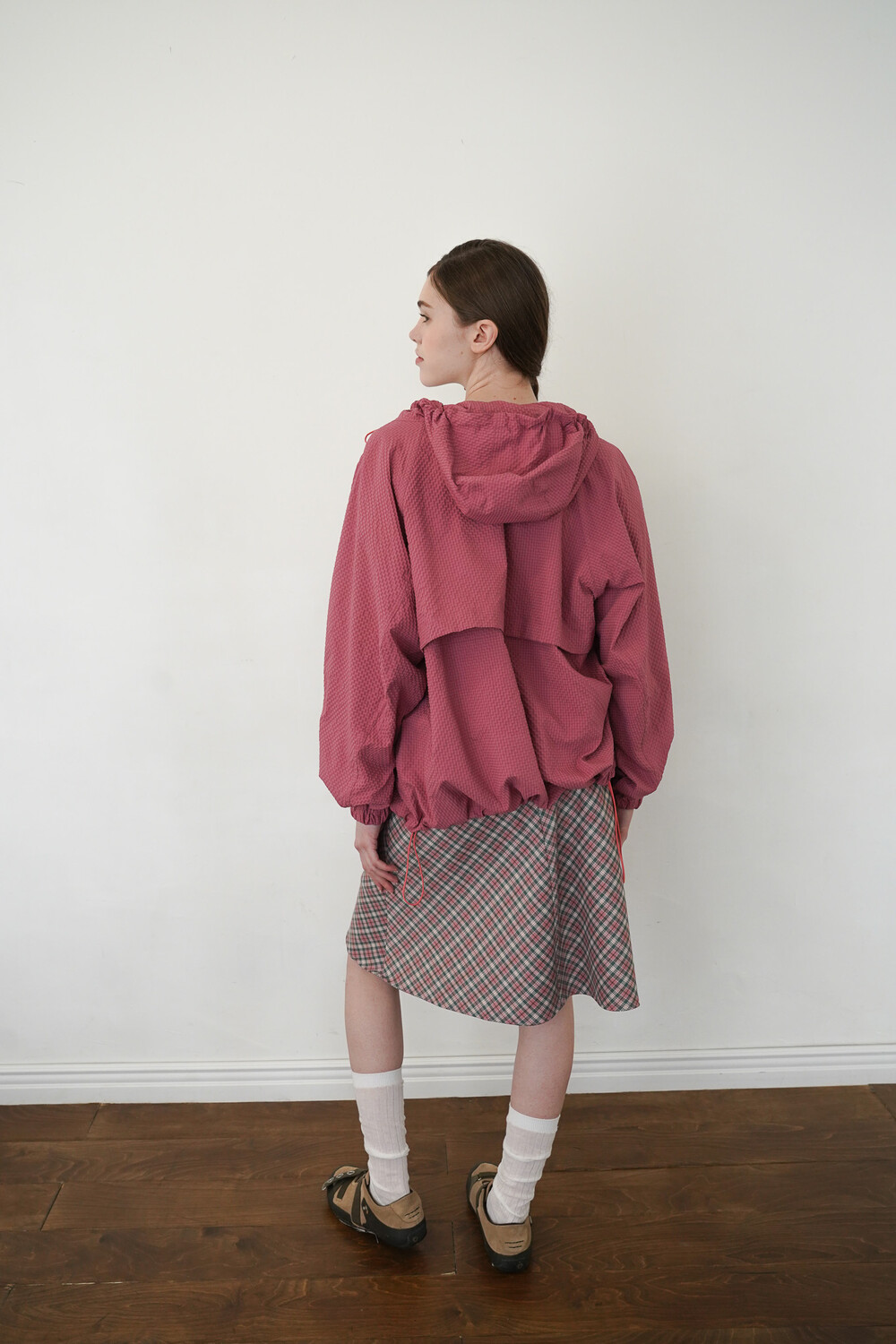 밑단에 스트링이 있어 원하는 핏과 기장감으로 연출하여 착용하실 수 있습니다.