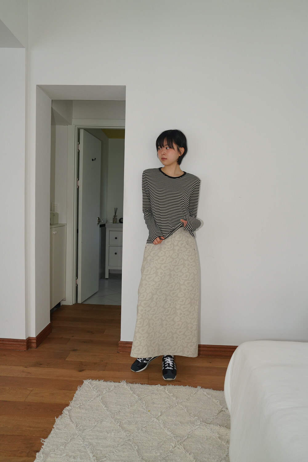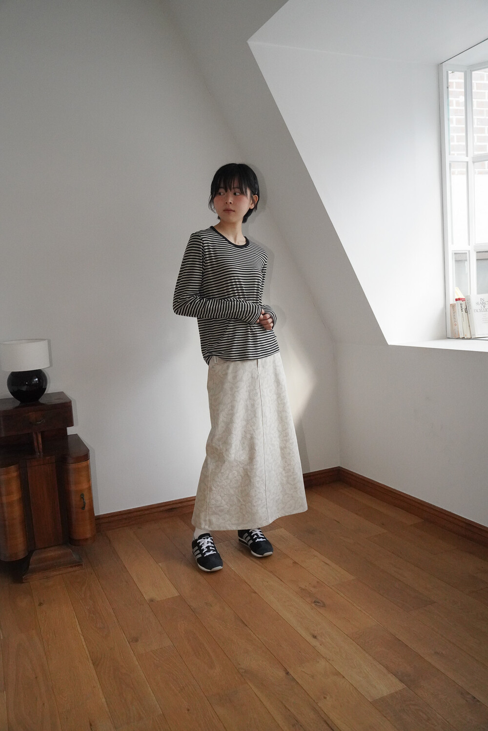 트윌조직의 면 100% 로 만들어진 스커트입니다. 발목 위까지 오는 긴 기장감의 스커트로 뒷 부분에 트임이 있어 착용감이 편리합니다. 모든 부자재 YKK를 사용하여 퀄리티를 높혔으며, 무늬가 톤온톤으로 배열되어 있어 레오파드 무늬가 크게 부담스럽지 않습니다.