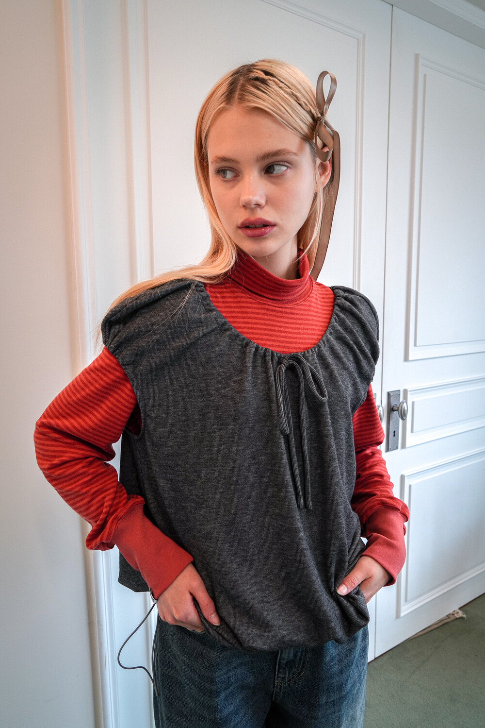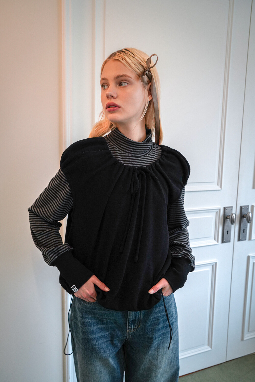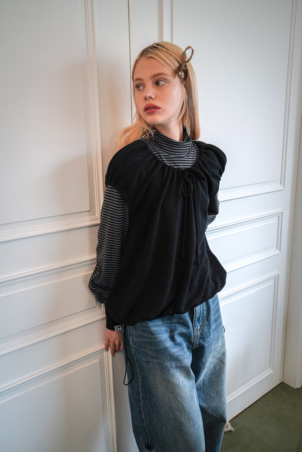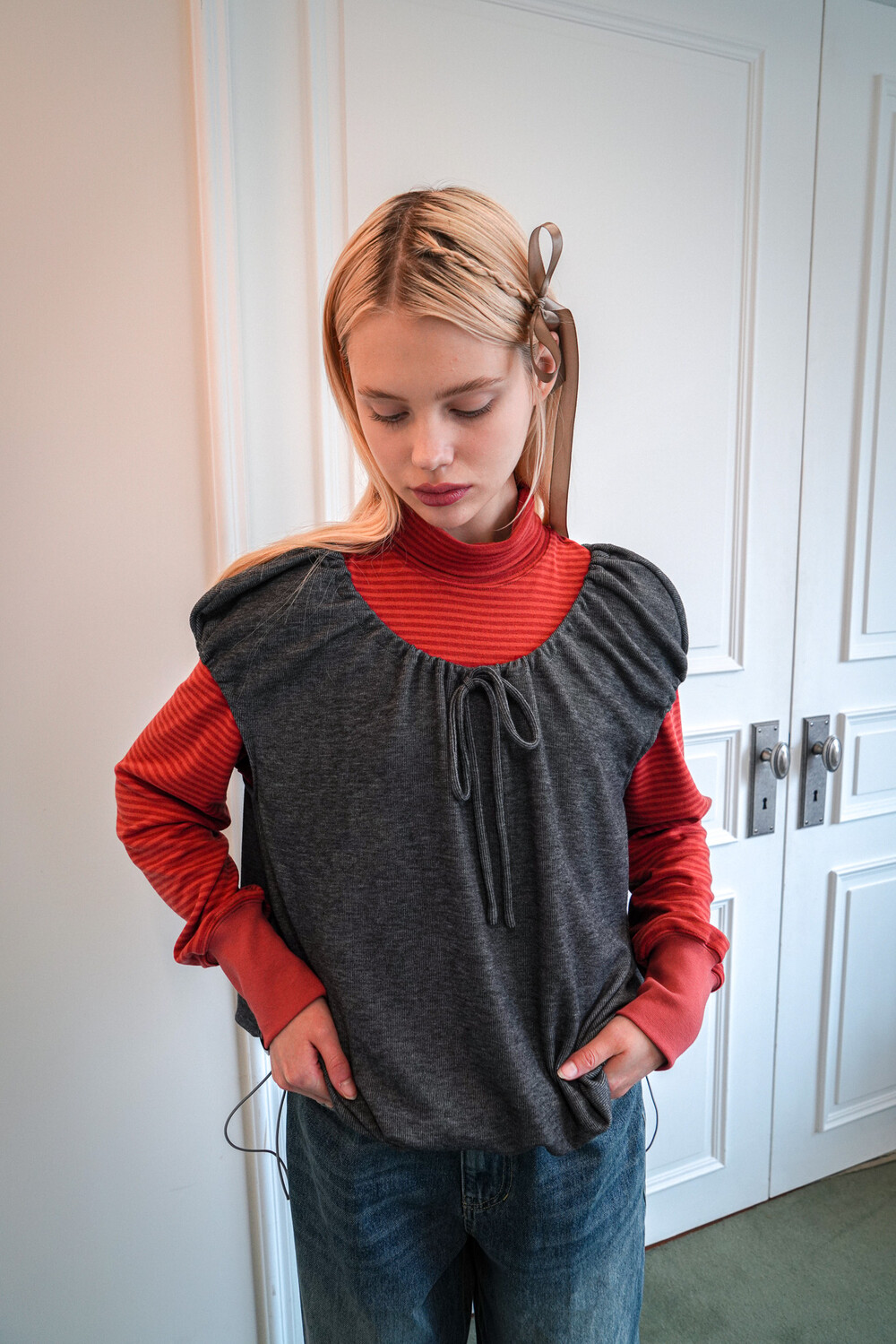 RIBBON SHIRRING KNIT VEST (3 COLORS)