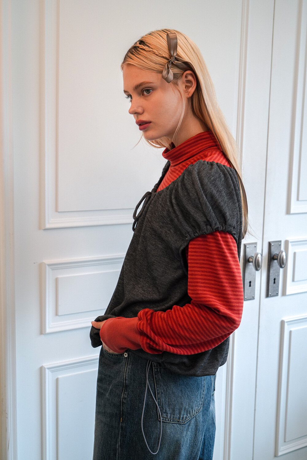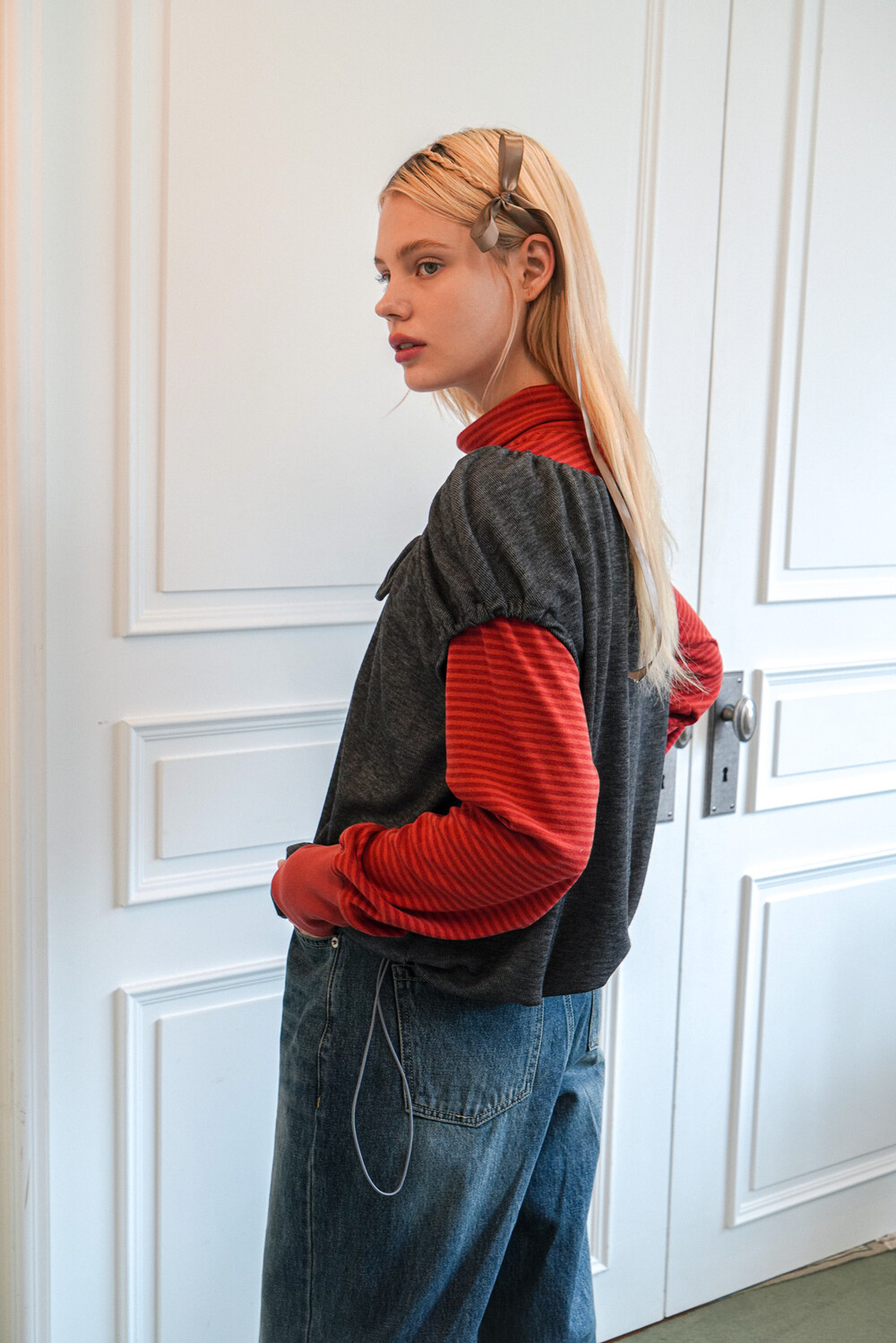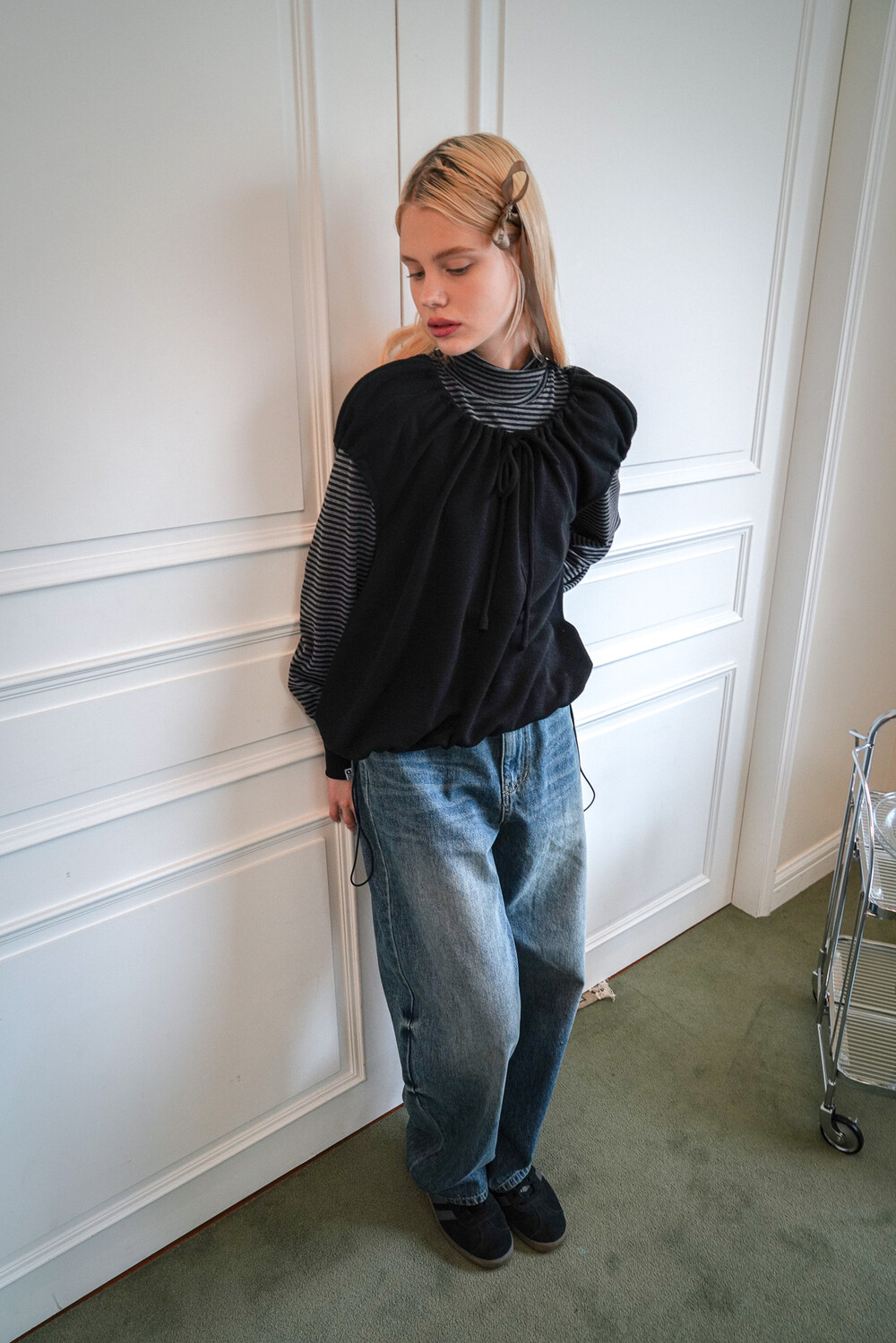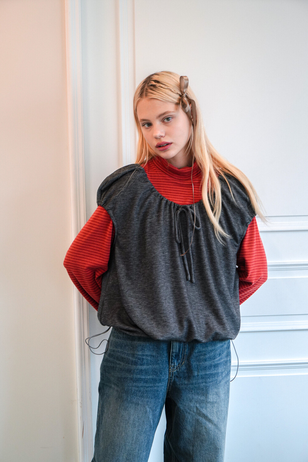 RIBBON SHIRRING KNIT VEST (3 COLORS)