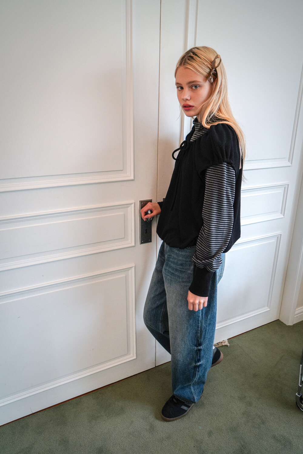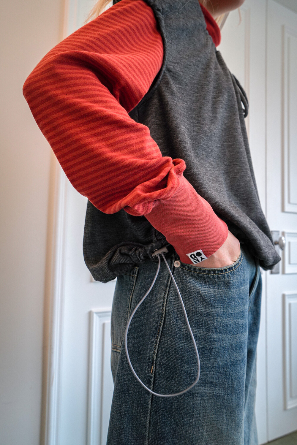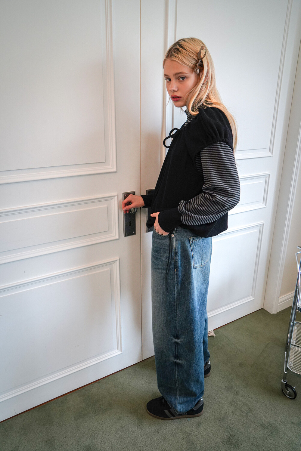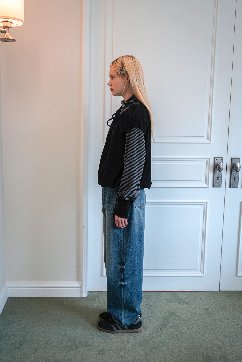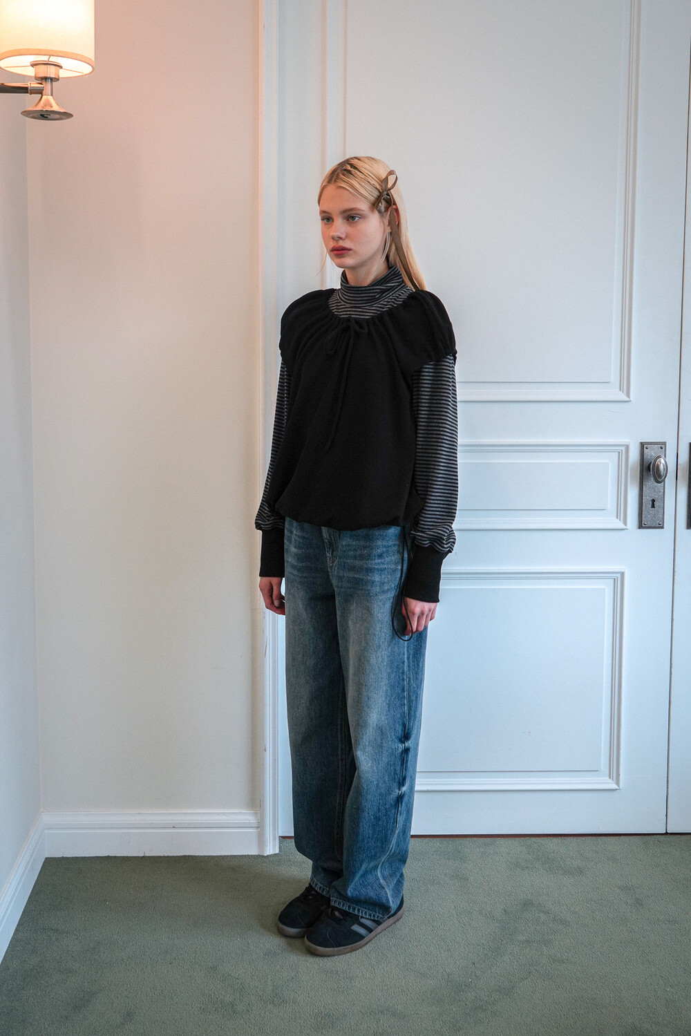 기모 니트 원단으로 보들거리는 촉감이 좋다는 특징이 있습니다. 밑단에 스트링과 스토퍼가 있어 밑단 넓이 조절이 가능합니다. 폴라티와 같이 스타일링 하셔도 좋으며, 가을시즌에는 자켓 이너로 입으셔도 좋습니다.