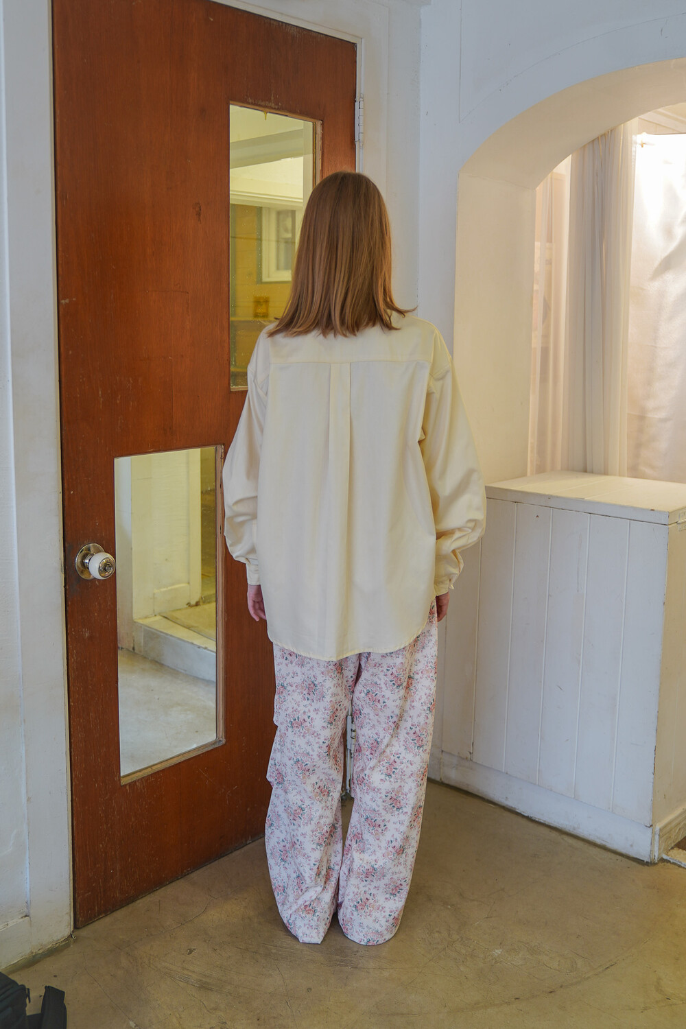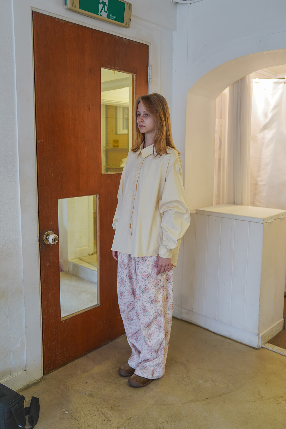 부드러운 텍스처의 면 원단을 사용하였으며, 넓은 암홀라인과 루즈하게 떨어지는 드랍숄더와 슬리브라인은 YE.D Archive가 직접 개발한 오버핏 셔츠 실루엣입니다.