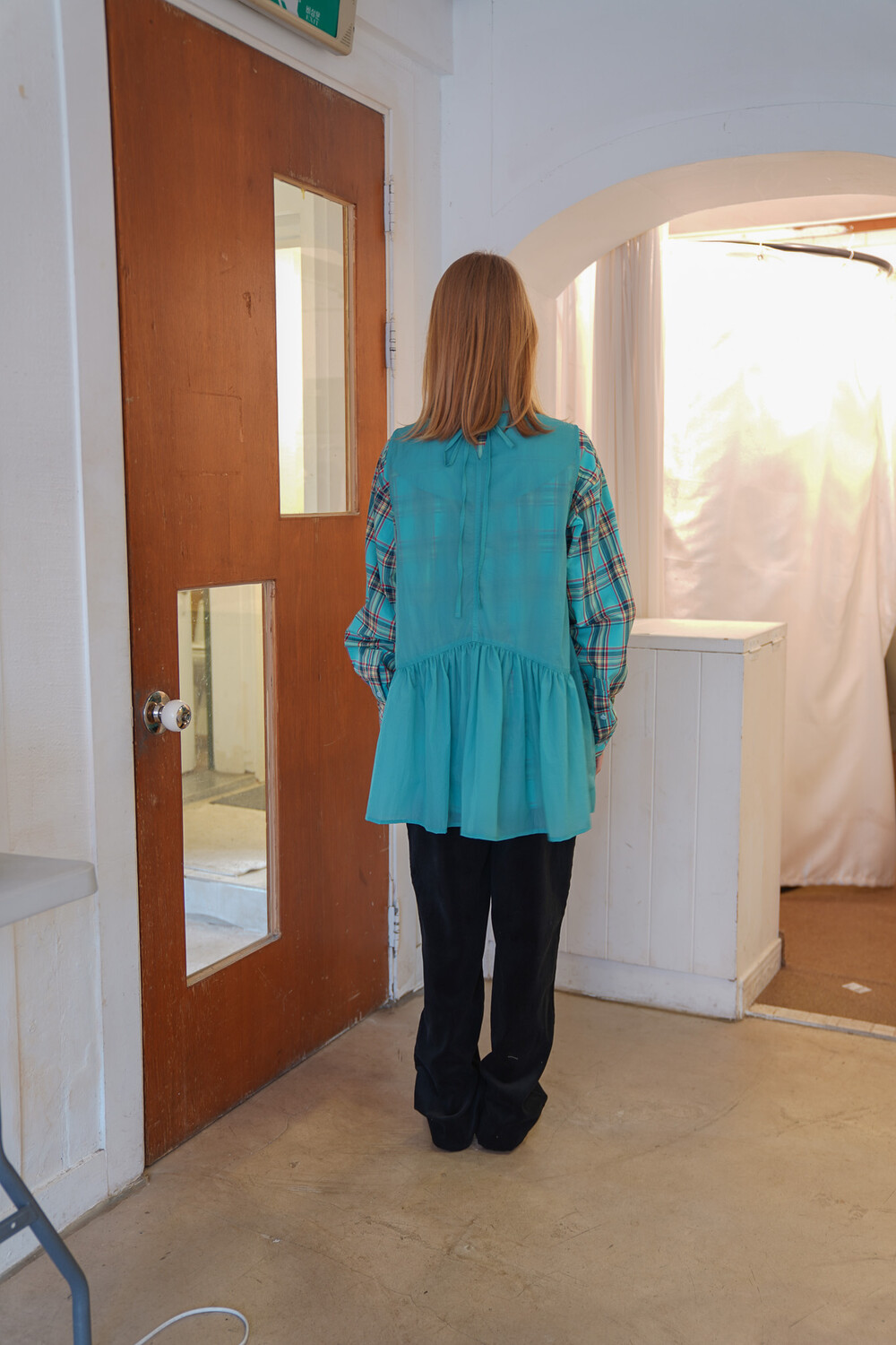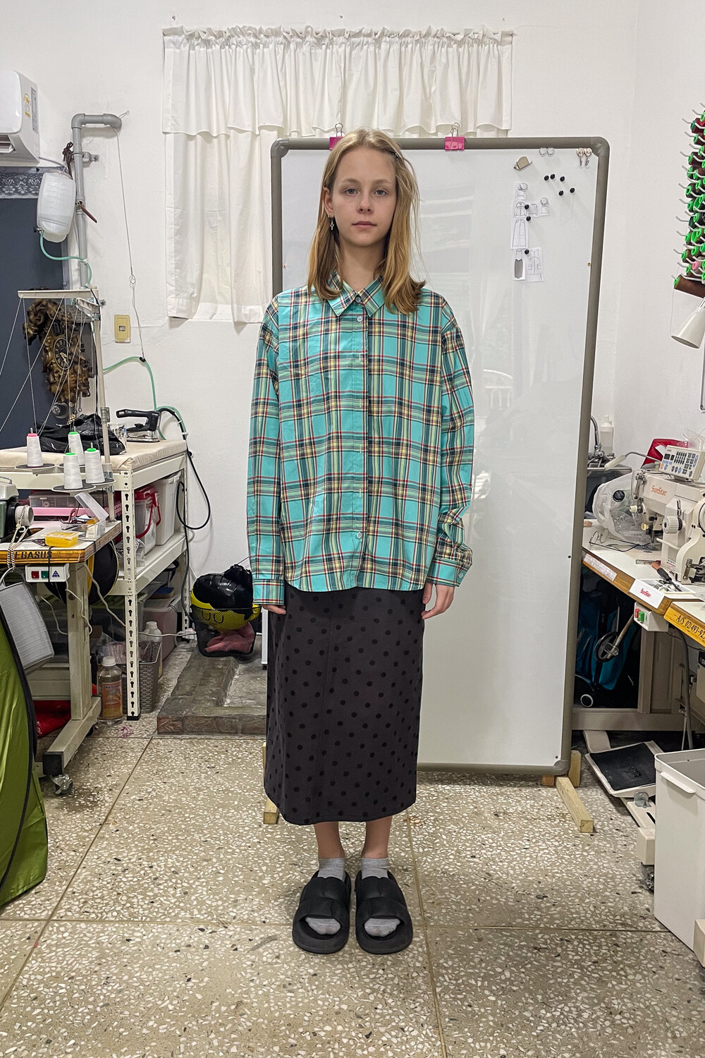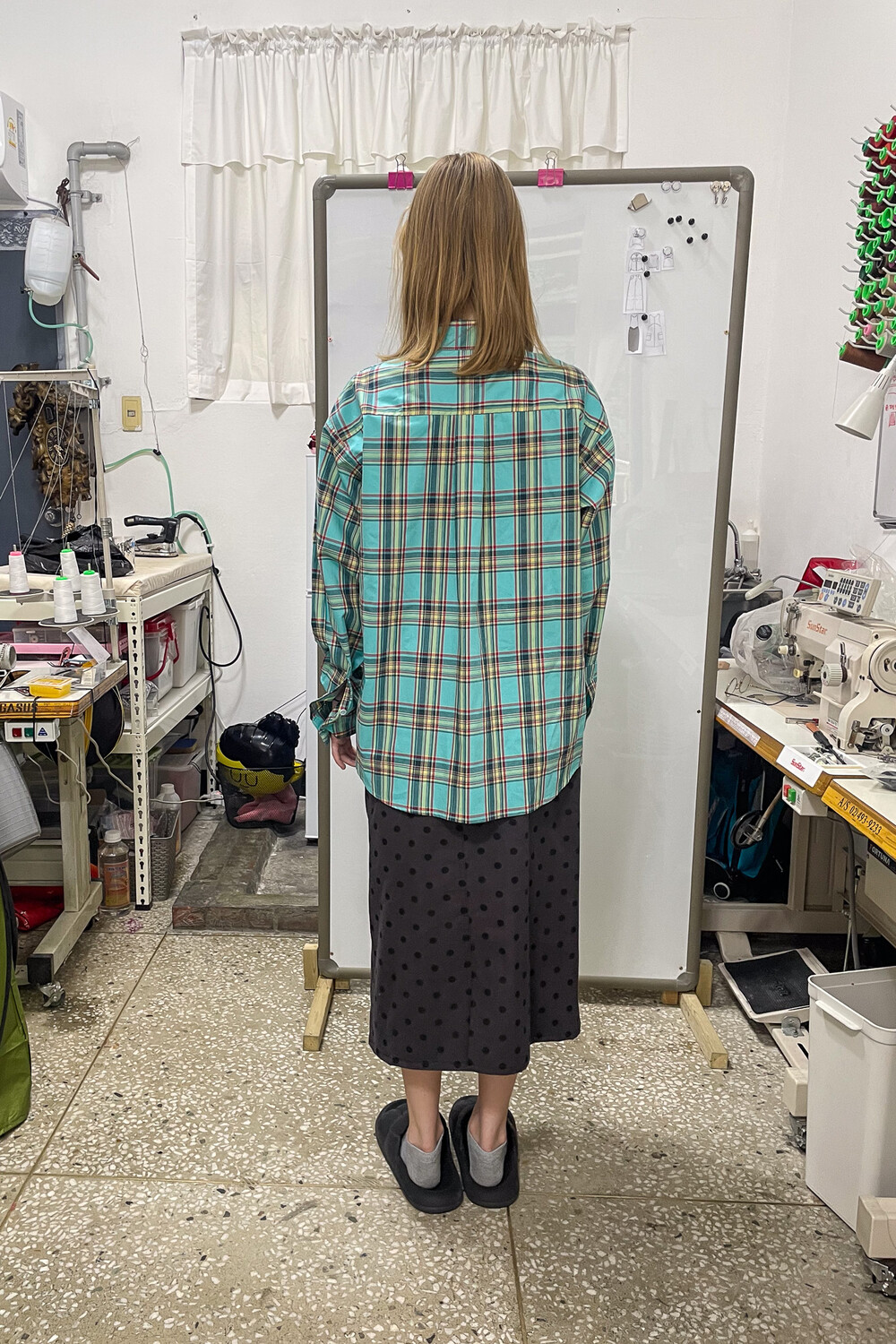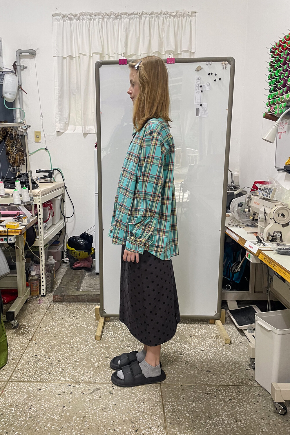 부드러운 텍스처의 면 원단을 사용하였으며, 넓은 암홀라인과 루즈하게 떨어지는 드랍숄더와 슬리브라인은 YE.D Archive가 직접 개발한 오버핏 셔츠 실루엣입니다.