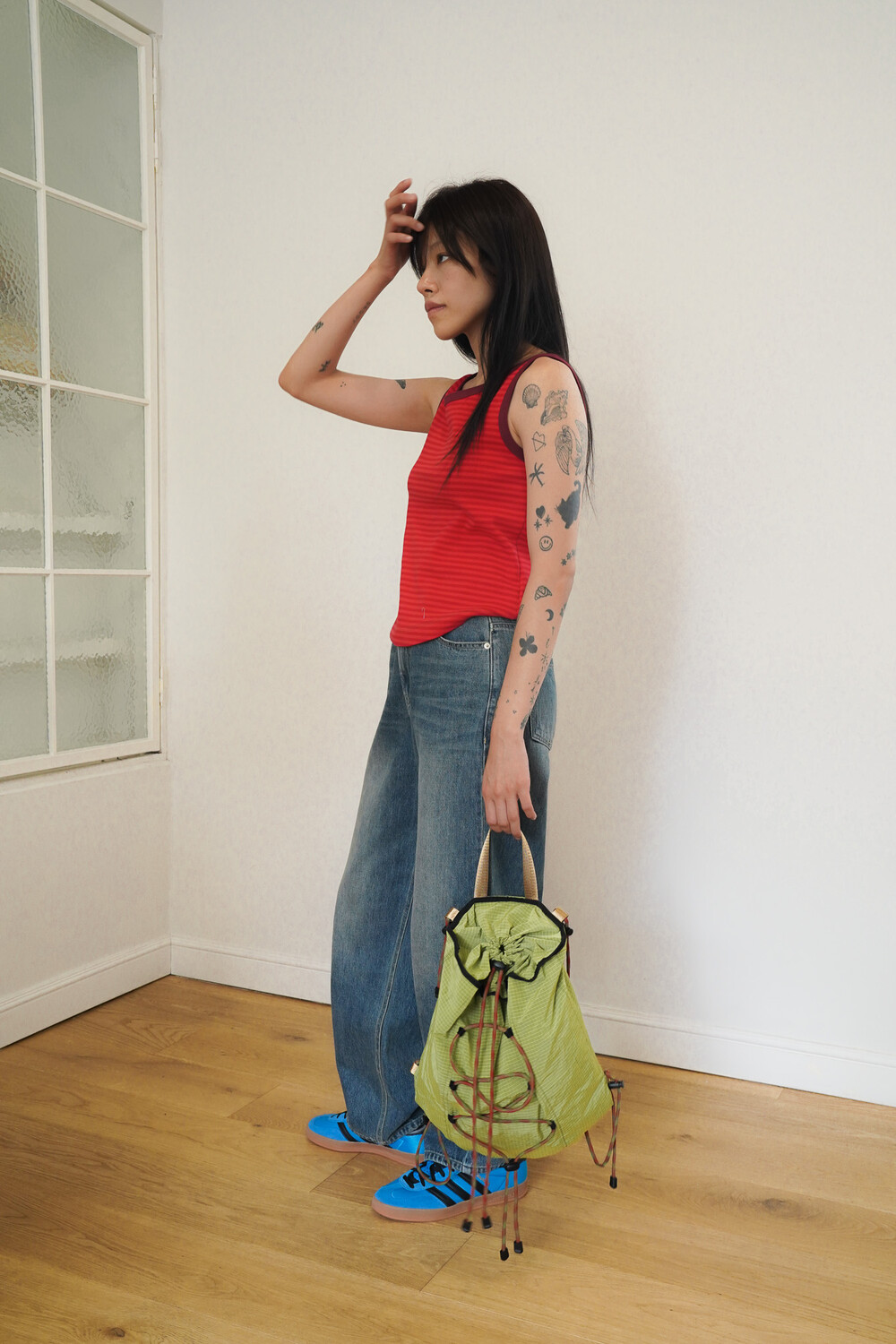 : 이전 그린*레드 컬러의 조합과 같으나 약간 형광빛이 도는 옐로우 그린*레드 색상의 스트링으로 바꾼 제품입니다.