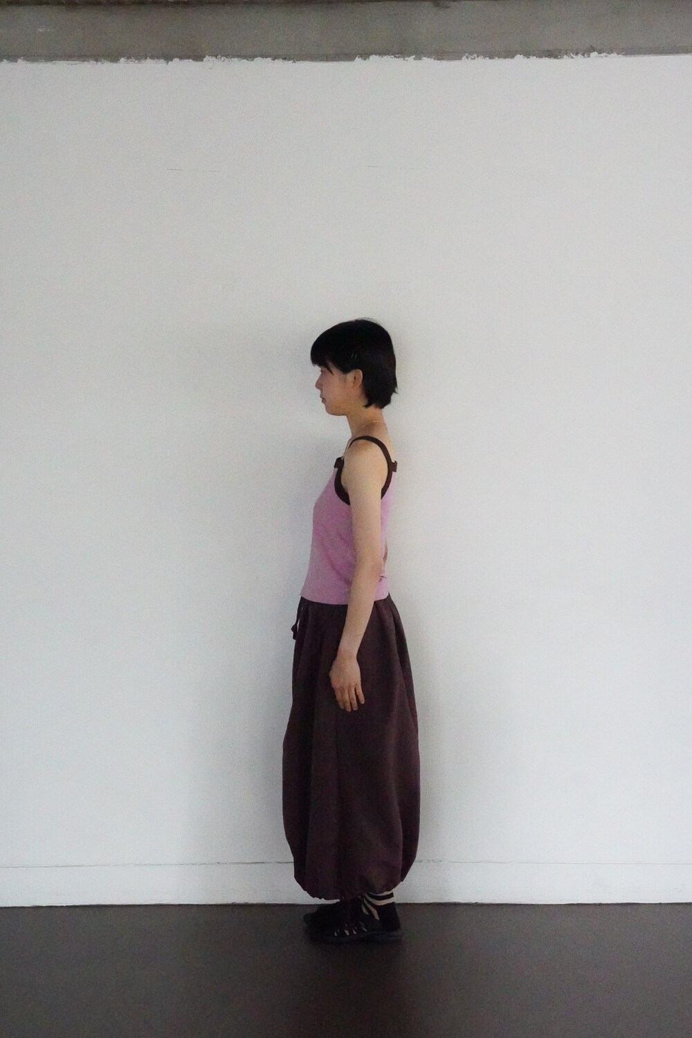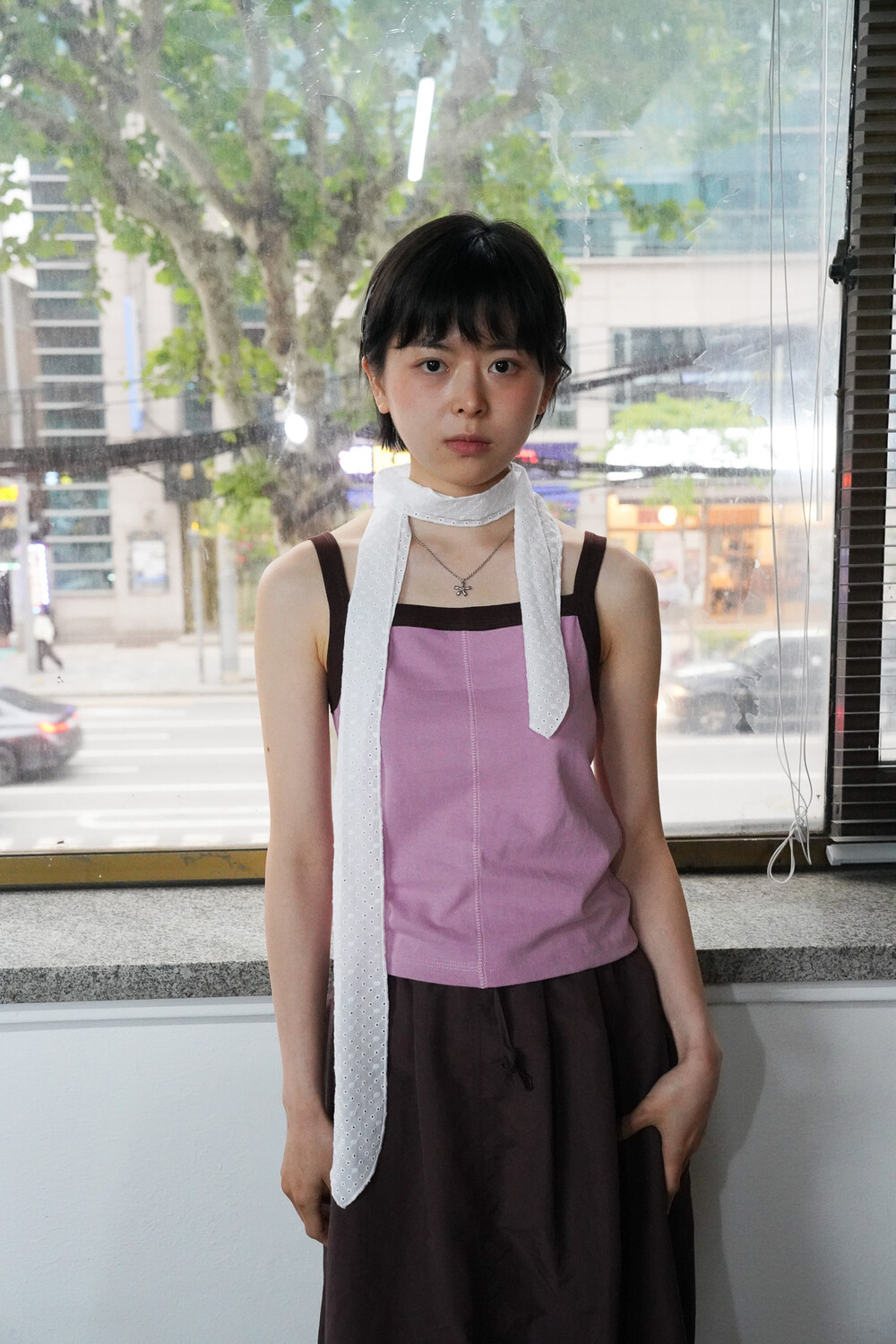 면100% 다이마루 소재의 나시입니다. 립이 두껍게 디자인되어 있으며 가운데 절개선에 가이루빠 스티치가 있어 베이직하면서도 독특한 스타일의 제품입니다.