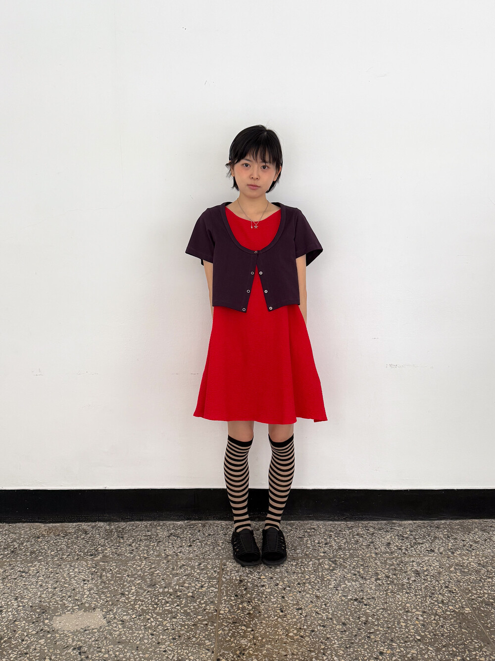 면100% 다이마루 볼레로입니다. 네크라인이 U 라인으로 깊게 파여있어 여리한 핏이 연출된다는 점이 장점입니다. 기장감이 허리선에서 끝나 하체가 길어보이며, 보통 첫번째 단추만 잠가 착용 하기에 다양한 체형에도 무난하게 맞습니다. *볼레로에 끼워져 있는 가시도트(스냅단추)는 무독성으로 알러지를 일으키는 성분을 빼고 제작된 제품입니다. 세탁시 녹슬지 않는 신주소재입니다.