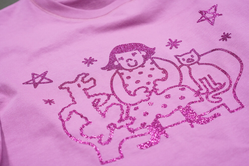 면 100% 다이마루로 만들어진 박스핏의 반팔입니다. 가슴 앞부분에 펄나염이 찍혀있는것이 특징입니다. (*건조기 절대 불가, 나염이 손상 될 수 있습니다.) 단독으로 입거나 소매가 긴 티셔츠와 함께 믹스매치하여 착용하셔도 좋습니다. 네크라인과 암홀 부분에 가이루빠 스티치가 쳐져있어 독특하고 견고함을 더하였습니다.