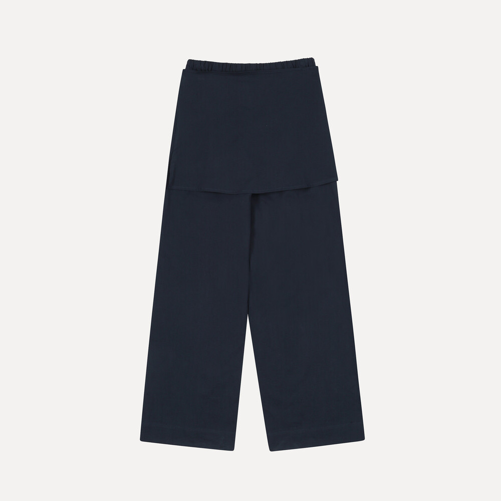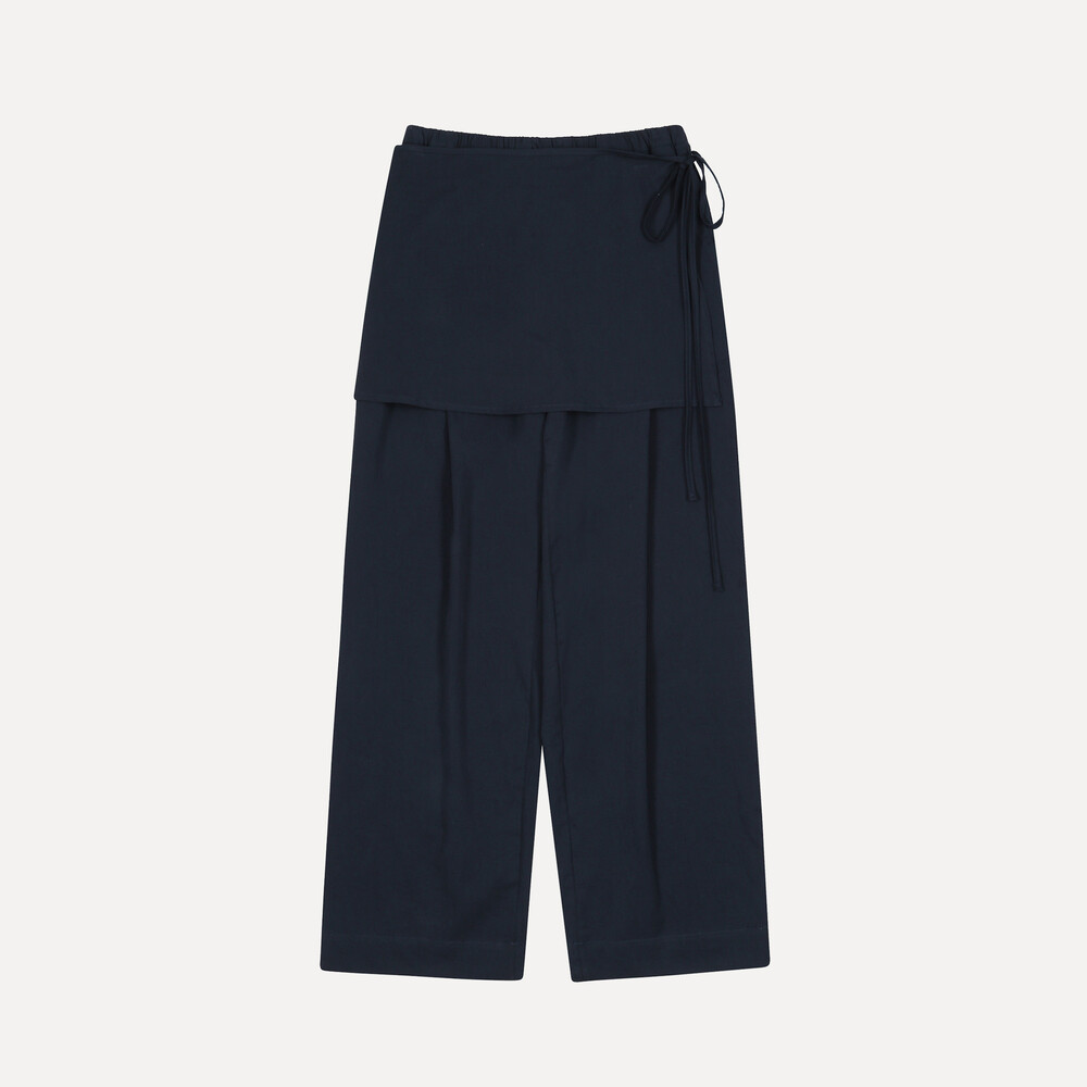 면100% 소재의 얇고 부드러운 원단으로 만들어진 제품입니다. 원단 특성상 착용감이 매우 우수하며, 랩스커트를 같이 레이어링 하여 입으실 수 있어 2가지 스타일로 착용 가능합니다.
